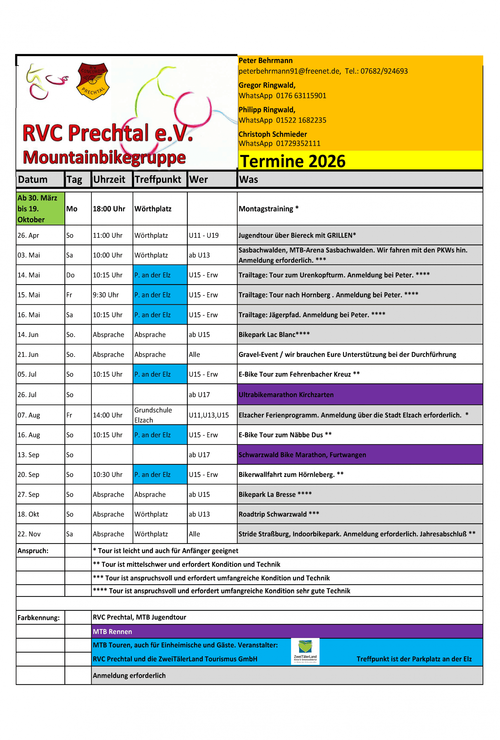 Infos bei: Peter Behrmann, Tel. 07682/924693, peterbehrmann91@freenet.de